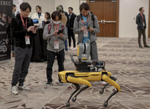 2022年3月12日,在美国得克萨斯州奥斯汀“西南偏南”多元创新大会和艺术节上,人们观看机器人四处走动。新华社发(尼克·瓦格纳摄)
