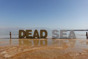 死海是世界海拔最低的湖泊。驱车自耶路撒冷驶向死海,90号公路两旁“海平面”“-150米”“-200米”等标识依次映入眼帘,一直延伸至死海湖岸——那里是地球已露出陆地最低点,位于海平面以下约430米。