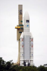 阿丽亚娜5型火箭1996年首次试验发射,曾将伽利略卫星导航系统和詹姆斯·韦布空间望远镜等送入太空。阿丽亚娜5型火箭原定今年6月16日执行最后一次发射任务,但因技术问题推迟;又因恶劣天气,计划本月4日执行的发射再推迟了一天。