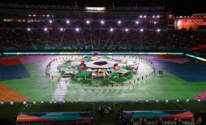 枪声先于哨声——距离本届女足世界杯开幕不到12个小时,奥克兰市中心发生枪击事件,造成3人死亡,给赛事蒙上了一层阴影。当天晚上,在寒风冷雨下的伊甸公园球场,女足世界杯如期揭幕,在简短的开幕式表演后,双方球员围绕在场地中圈,全场肃立,为枪击事件中的遇难者默哀。