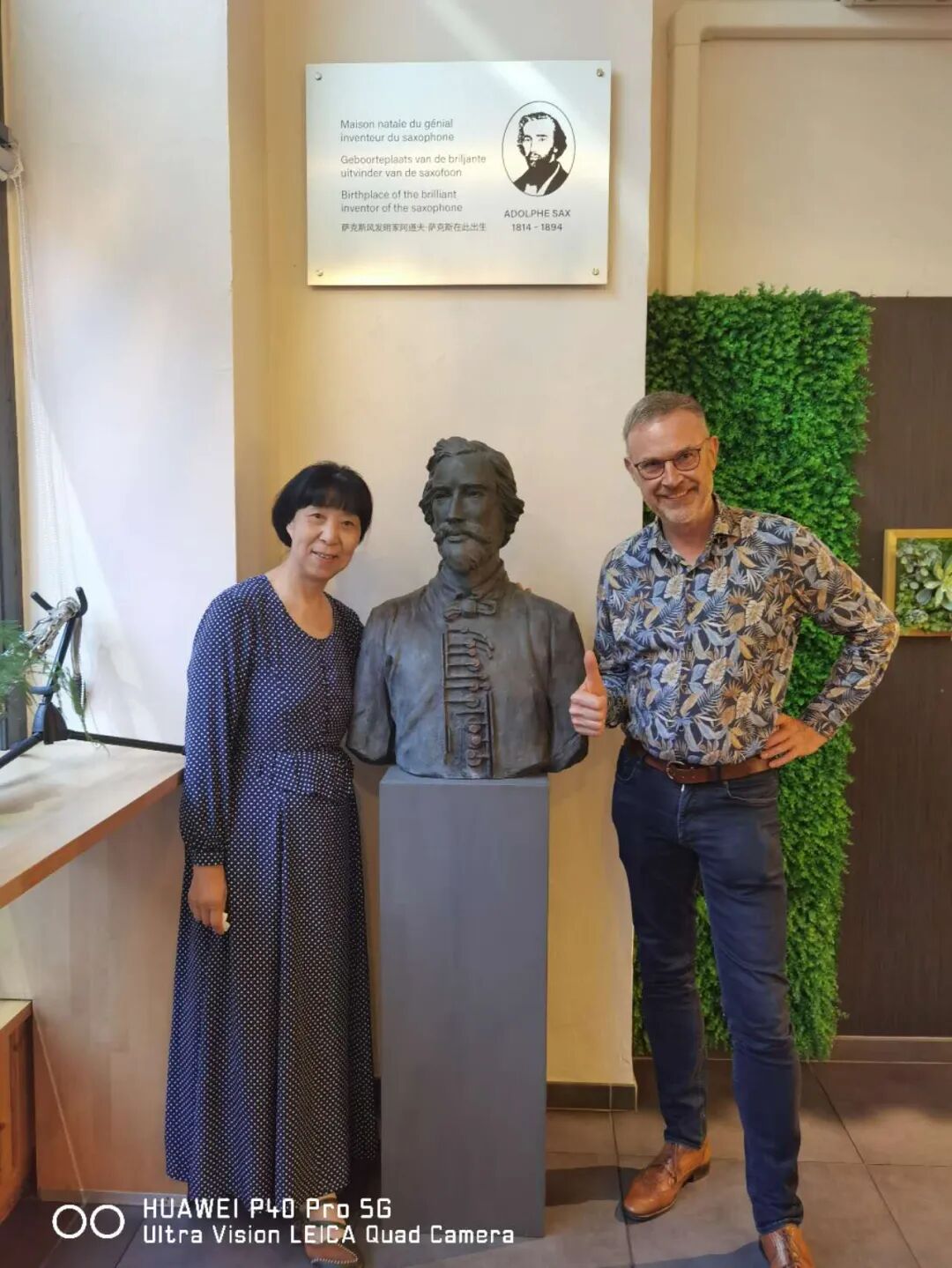 近日,由旅比知名华人雕塑艺术家闫淑芬女士设计创作的萨克斯风发明者阿道夫萨克斯半身像,在比利时南部历史名城迪南落成。