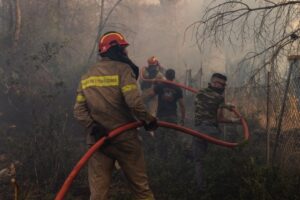 “我们和其他9个地中海沿岸国家一样,正经历着危险的夏天,”希腊气候危机和民防部长瓦西利斯·基基利亚斯在电视讲话中说,“超过40摄氏度的高温和强风造成了绵延许多公里的火线”,消防人员正在“难以想象的疲劳”中战斗。
