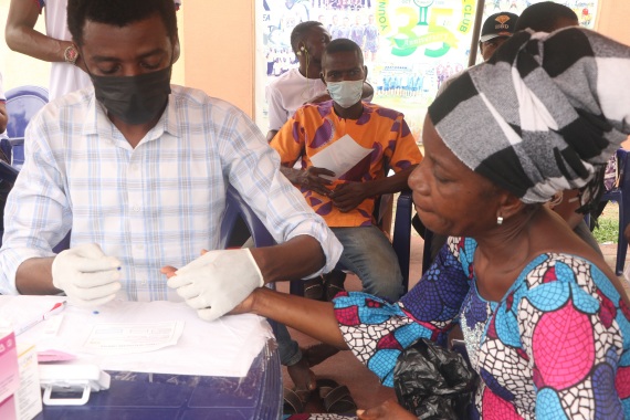 2022年4月24日,在4月25日“世界防治疟疾日”前夕,一名妇女在尼日利亚拉各斯接受疟疾检测。新华社发(埃马·休斯顿摄)