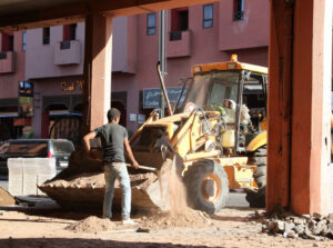 12日上午,记者从马拉喀什出发,赶赴震中区域塔拉特恩雅库布。沿途路况很差,盘山公路上堆满碎石,地图上显示4个小时的车程,不得不因山体落石被迫一次次耽搁。在一处盘山路的悬崖边缘,地震造成的公路裂缝足有五六厘米宽。为了给运输卡车让路,记者的车有时不得不紧贴山路最外侧。大车扬起的灰尘,数次把记者所驾汽车的前挡风玻璃遮个严严实实。现在想来,阵阵后怕。
