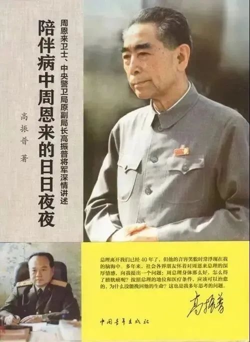 高振普将军在书中写道:“总理离开我们40年了,他的音容笑貌时常浮现在我的脑海中。多年来,许多朋友问我:总理身体那么好,怎么得了膀胱癌呢?按照他的地位和医疗条件,应该可以治愈的,为什么没能挽回他的生命?这也是我多年思考的问题。”