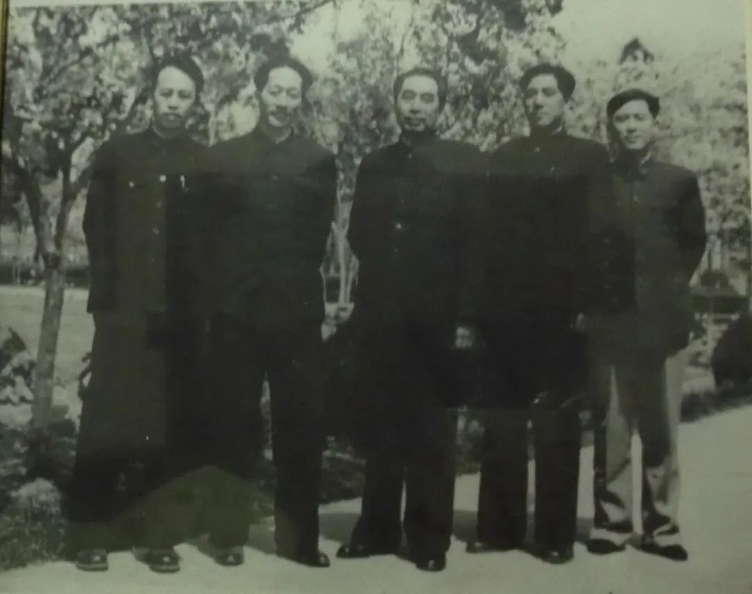 ▲1958年3月,在成都会议(中央政治局扩大会议),周总理和秘书,左起:周家鼎(军事秘书)、顾明(经济秘书)、周总理等