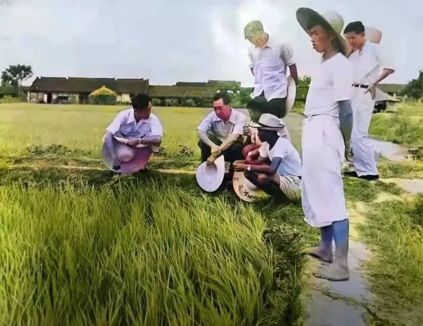 ▲1958年,周总理(左二)由上海县县长范钦山(在总理背后的站立者)陪同,在马桥乡田头视察。顾明时任周总理的经济秘书。范钦山现年96岁健在(刘炳华提供)