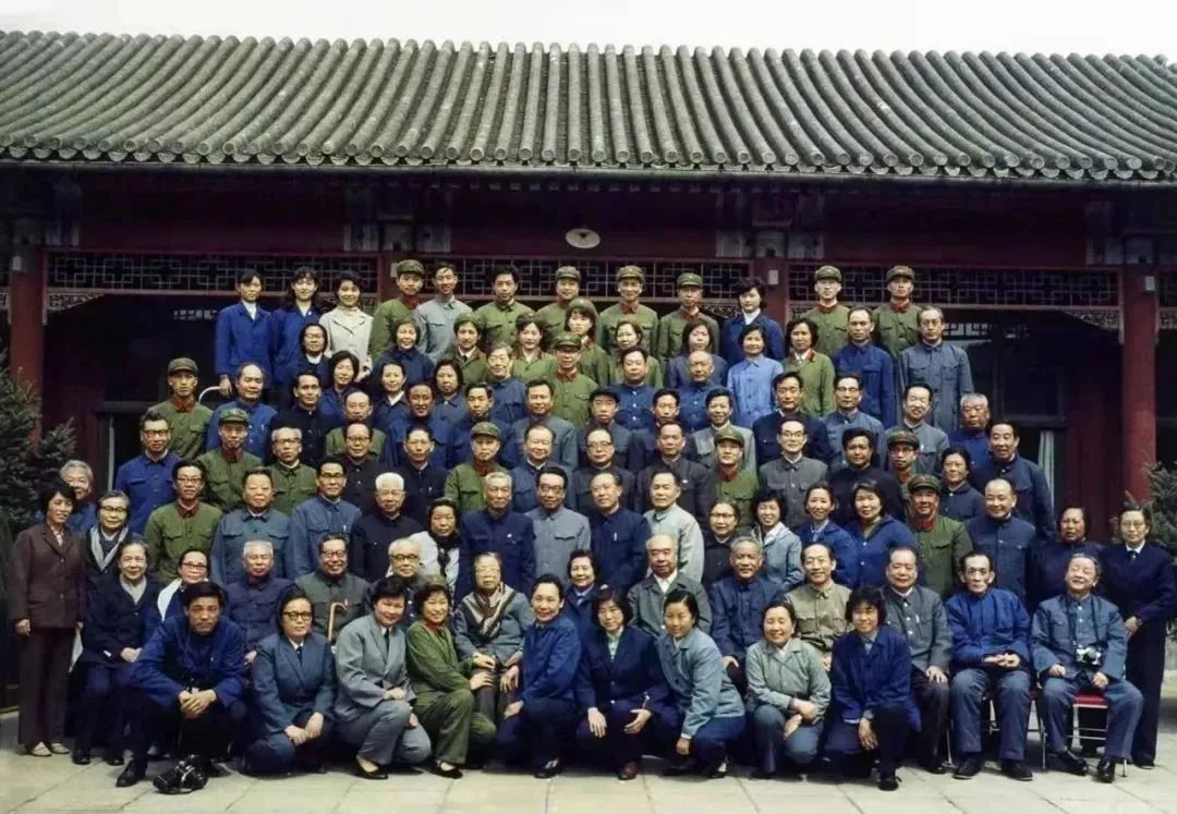 ▲1977年1月8日,周总理逝世一周年忌日,原总理办公室工作人员到西花厅看望邓颖超(左五),二排右一办公室主任童小鹏、右三罗青长、右四顾明、右六戚剑南;第三排左一赵炜、左六孙岳、右一陈浩;第四排左六周家鼎、左九成元功、左十一钱家栋;第五排左二吴群敢等(俞梅荪认识的前辈)