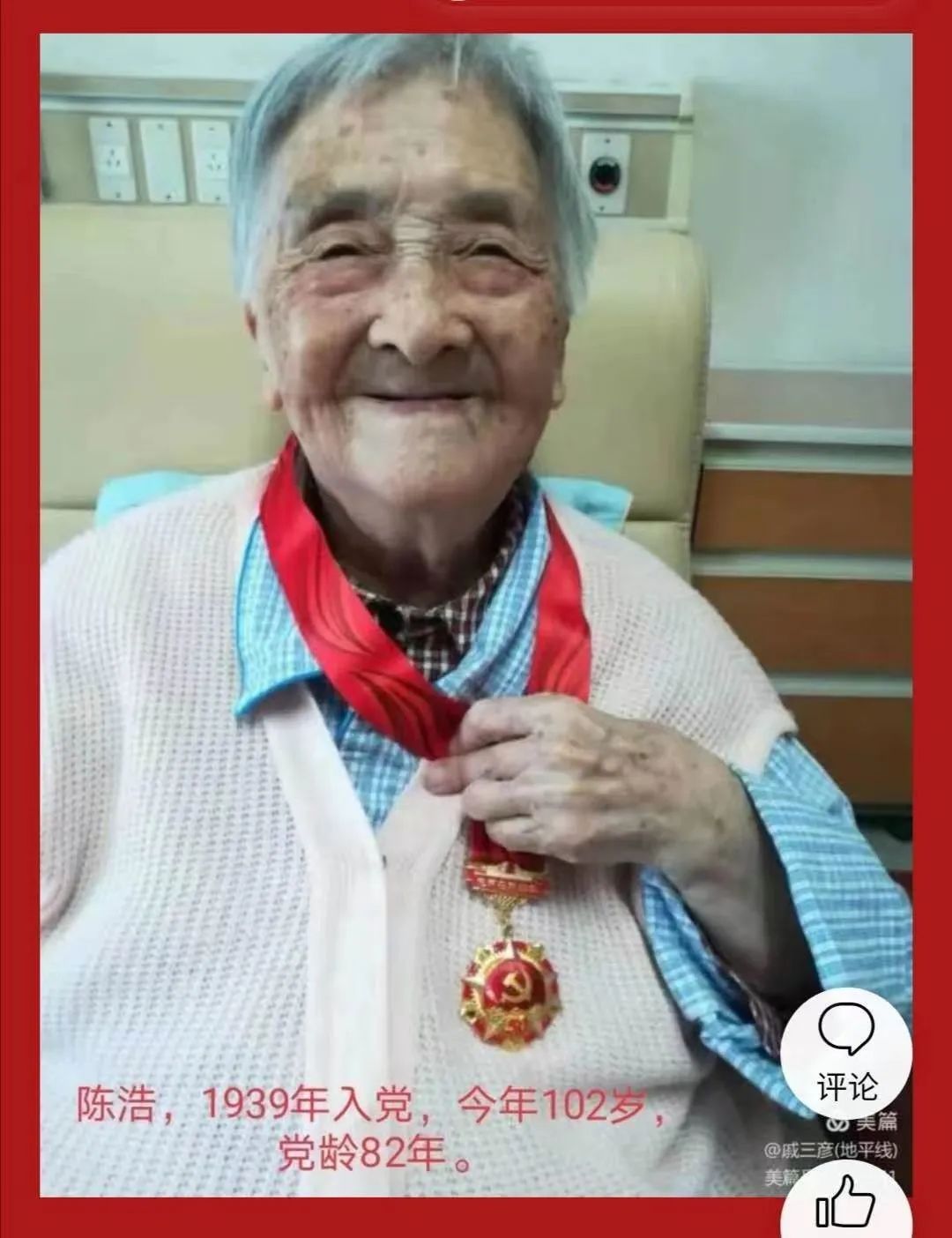▲2021年7月建党百年,周总理的外事秘书102岁的陈浩获得奖章