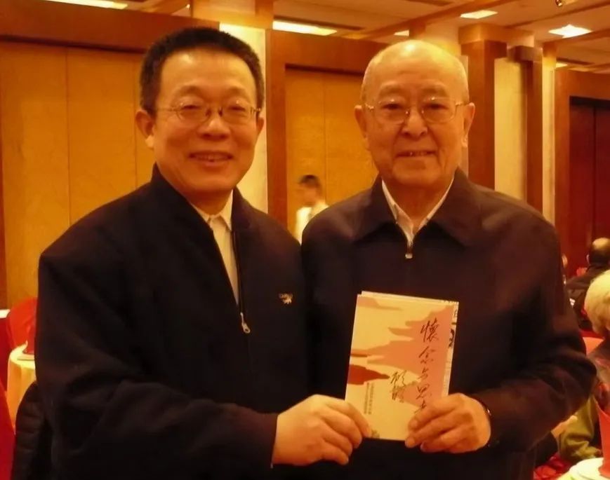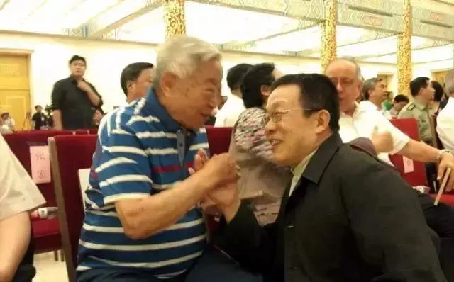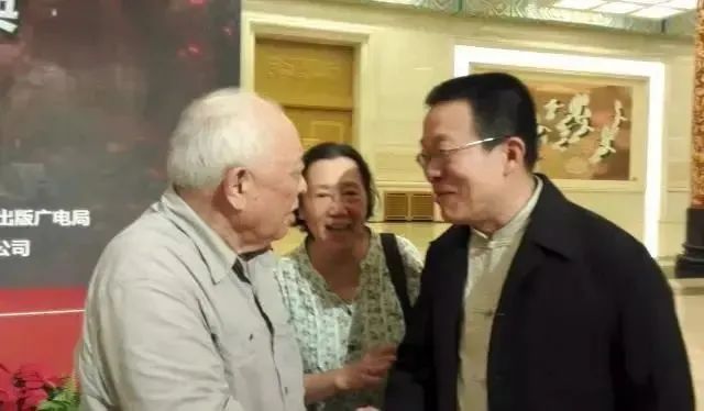 ▲2017年3月5日,周总理冥诞追思会,俞梅荪把顾明忆周总理的回忆录送给王铁成并告知顾明对他扮演的周总理很赞赏