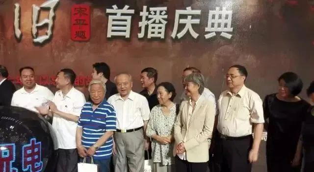 ▲2016年6月26日《海棠依旧》首映式,左起,陈毅扮演者崔根栓、总理侄子周秉和、秘书马列、卫士高振普、侄女周秉宜、叶剑英之女叶向真、恽代英侄孙恽铭庆、毛泽东外孙女孔东梅(俞梅荪摄)
