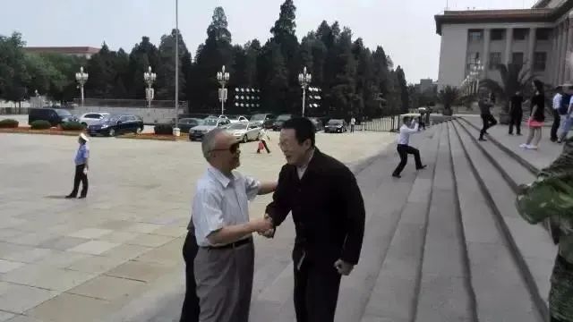 ▲在人民大会堂东门,俞梅荪迎候周总理卫士78岁的高振普将军