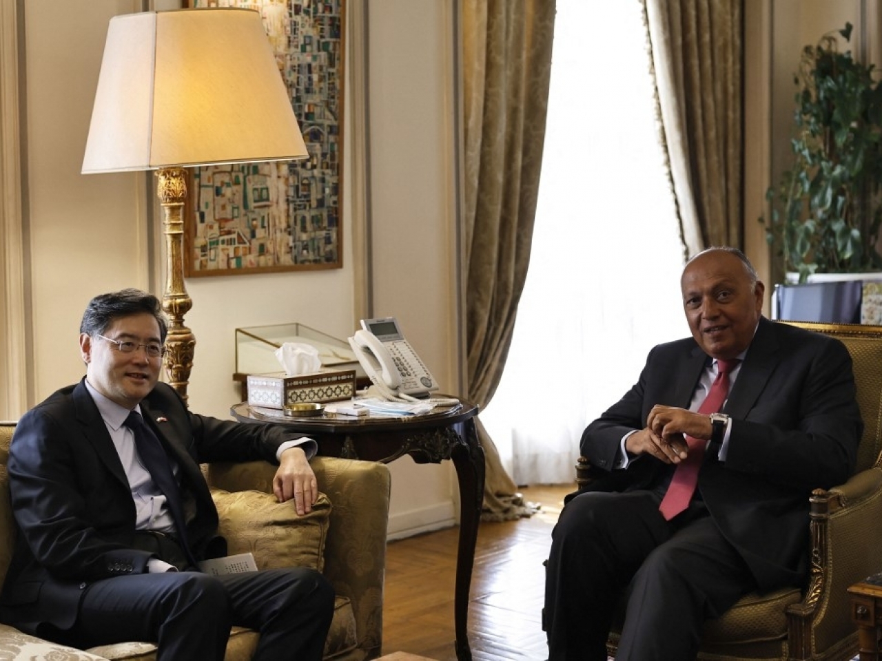 秦剛之後又同埃及外長舒克里舉行會談。雙方高度評價中埃團結合作、並肩前行的典範作用和超越雙邊範疇的戰略意義,表示將共同落實好兩國元首重要共識,不斷提升兩國關係水平,加強多邊協調,共同維護國際關係基本準則,捍衛國際公平正義。