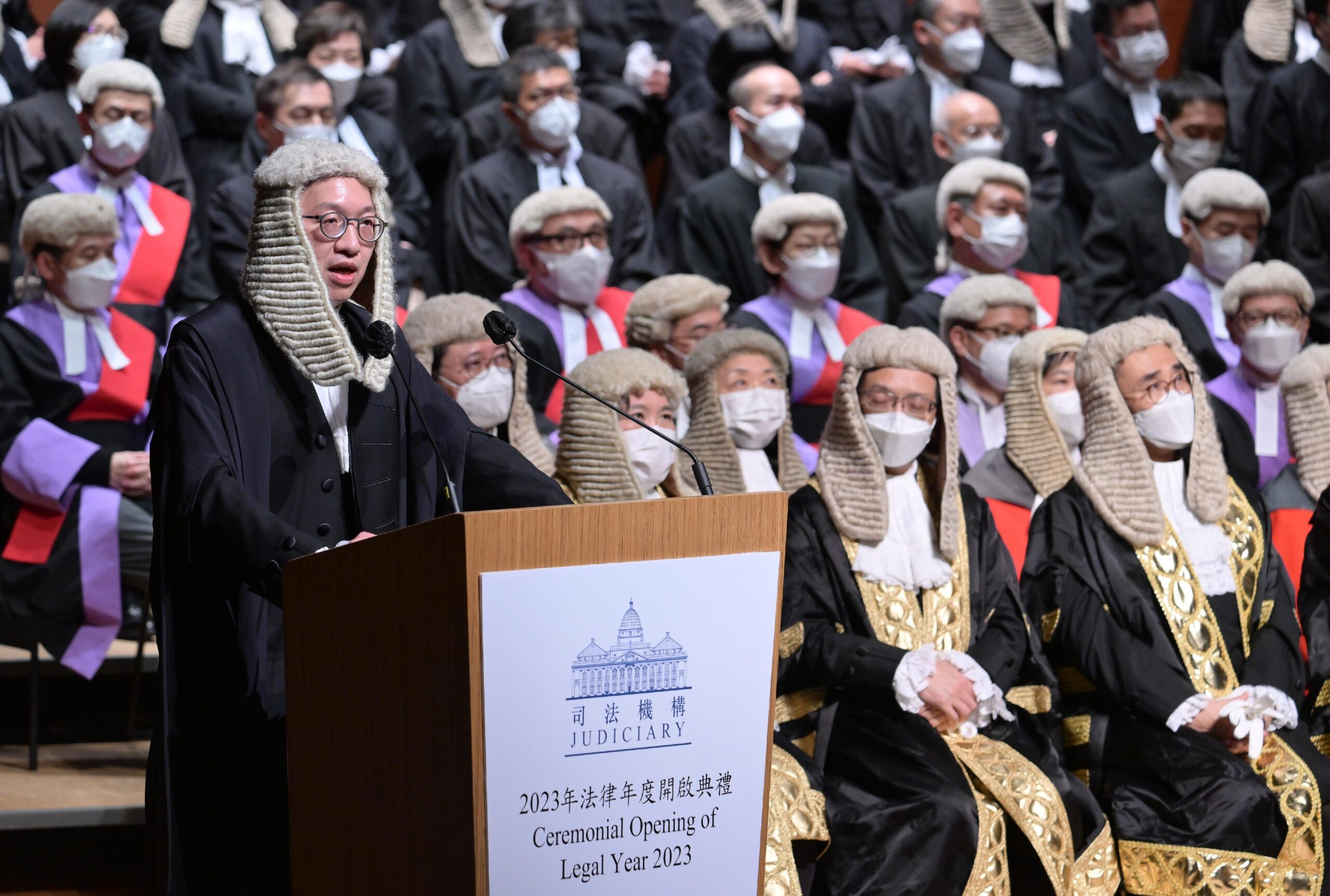 他重申行政長官並不行使任何審判權,強調香港普通法制度最獨特的優勢是堅韌性,會用卓越的實力向抱有懷疑或感到悲觀的人證明他們是何等錯誤。