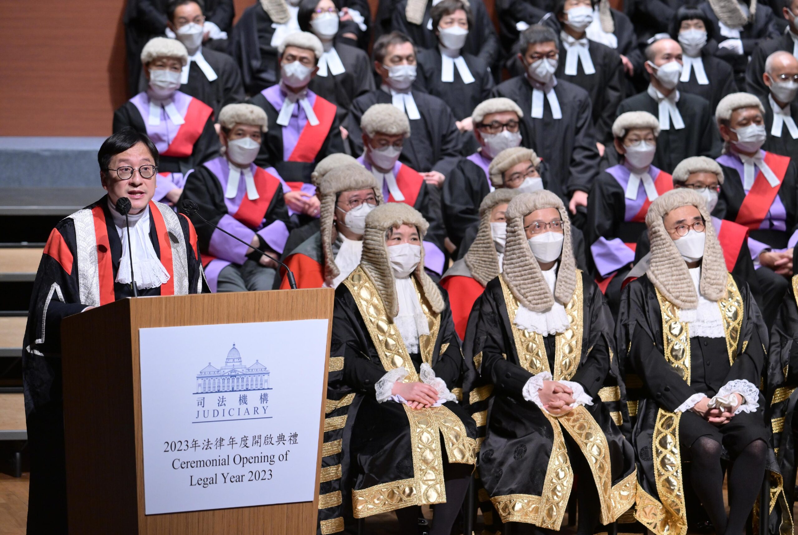 我謹代表香港司法機構熱烈歡迎各位出席法律年度開啟典禮。我很高興法律年度開啟典禮經過新冠病毒病疫情影響後,事隔兩年能再次在大會堂舉行。這項一年一度的重要典禮讓公眾聚焦法治與司法工作,以及司法機構在當中的關鍵角色。司法機構在我們社會肩負的角色,正是我今天演辭的主題,此外我亦會概述兩項新的措施。