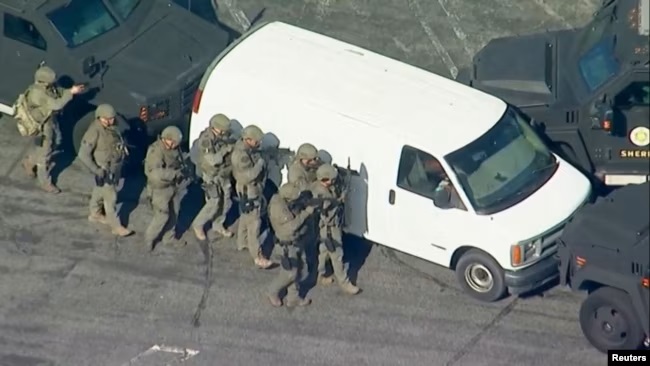 週日下午,執法人員包圍並進入一輛白色麵包車,官員們懷疑這輛麵包車是由這名槍手駕駛的,槍手向南加州的一家交際舞廳開火,造成10人死亡,10多人受傷。