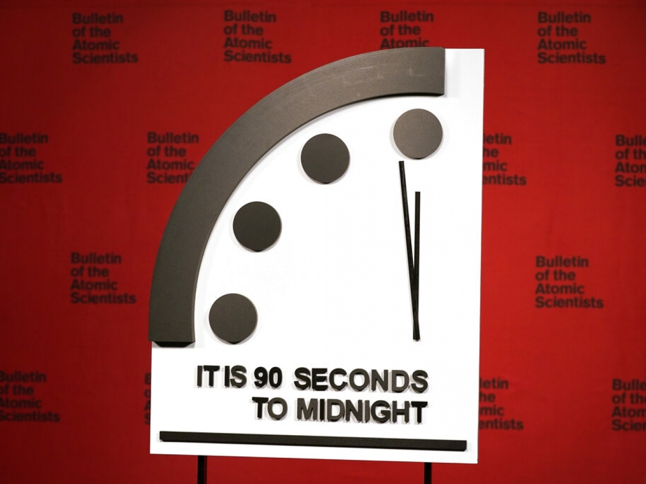 (中華新聞通訊社/中華時報1月25日訊)美國雜誌《原子科學家公報》的科學家小組宣布,將「末日鐘」撥快10秒,距離象徵「世界末日的午夜」只剩90秒。