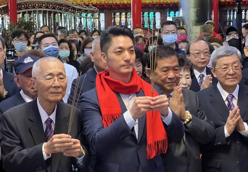 大年初一蔣萬安行程依舊滿檔,一口氣安排到11座廟宇參香。 大年初二,蔣萬安再度安排關渡宮、北投天后宮、指南宮、木柵忠順廟、北投福星宮及北投慈生宮等10座廟宇參拜行程。