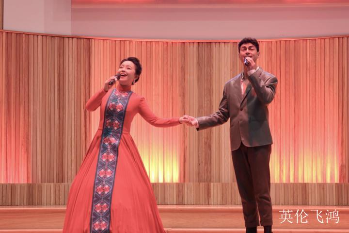 晚会请来了几位伦敦西区的音乐演员,中英混血帅哥 CARL MAN,以及 LAURA PICK,他们都表演了自己的代表作品。来自北京的著名抒情花腔女高音武赫与 CARL MAN 共同演唱了音乐剧《西区故事》主题曲 TONIGHT。英国女中音 PHOEBE HAINES 演唱了上世纪二十年代中国留英诗人刘半农的诗歌《教我如何不想她》。 女高音朱珍演唱了英文歌曲”YOU RAISE ME UP”,这些元素的加入展现了艺术 形式的多样性和多元化的融合与交流。