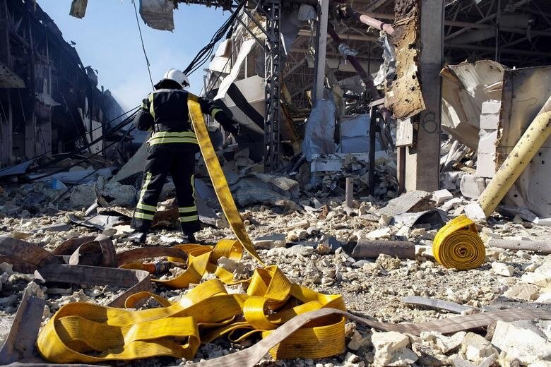 變電所發生嚴重事故,烏克蘭港口城市敖德薩與附近地區多達50萬個家庭無電可用。圖為敖德薩去年5月一處購物中心遭砲擊。(路透社)