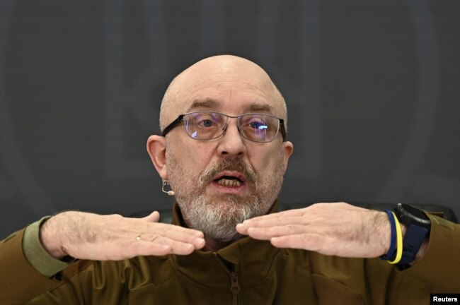 烏克蘭國防部長列茲尼科夫在基輔舉行記者會。(2023年2月5日)