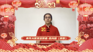 文麟递交的君内德(Junayed Ilhan Guernesey)参赛作品:《我的武术缘》获青年大使奖(英国区)。君内德在获奖感言中分享了他学习中文和武术的故事。“我在英国文麟中华文化学校学习中文。非常感谢上海市侨务办公室主办的这个活动。感谢英国上海商会和我的学校给我提供这次机会,可以和大家分享我的故事。我从小就喜欢中国武术,喜欢学习中文。这次能获奖让我非常激动。我今后要更好地学习中文和中国文化。”他特别希望能去上海,去看看中国。