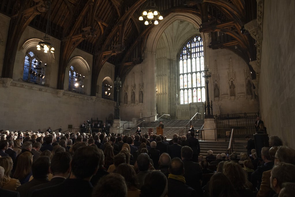 數百名議員和議會幕僚擠滿了威斯敏斯特宮,聽取澤連斯基的演講。這座有900年曆史的殿堂是英國議會歷史最悠久的部分,沒有暖氣。英國一直烏克蘭最大的軍事支持者之一,向基輔送去了超過25億美元的武器和設備。