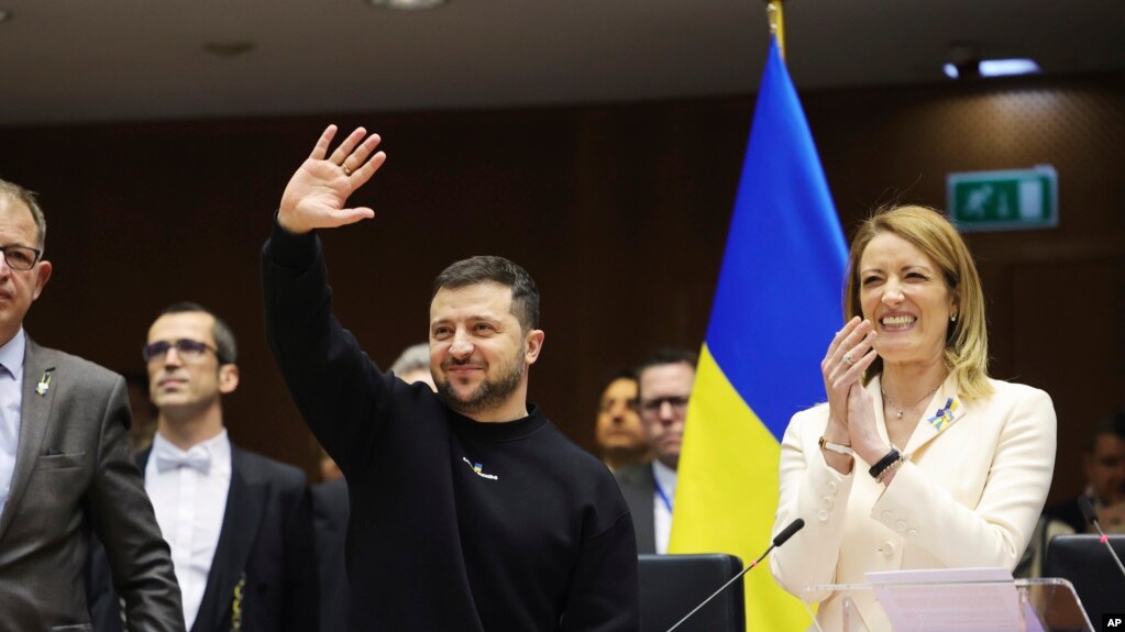 歐洲聯盟領導人星期四(2月9日)起立鼓掌歡迎烏克蘭總統弗拉基米爾·澤連斯基(Volodymyr Zelenskyy)。他對歐洲議會發表了講話。他呼籲向烏克蘭提供戰鬥機,以抵禦持續了近一年的俄羅斯入侵,並力促歐盟接納飽受戰火蹂躪的烏克蘭為成員國。