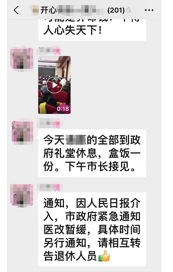 2023年02月08日上午,武漢數萬名退休老人上街抗議醫保改革!並高唱國際歌。抗議取得了取得階段性勝利,市政府宣布將暫不執行醫改,不過,民眾擔心政府上述承諾不過是緩兵之計,計畫在2月15日再度舉行活動。
