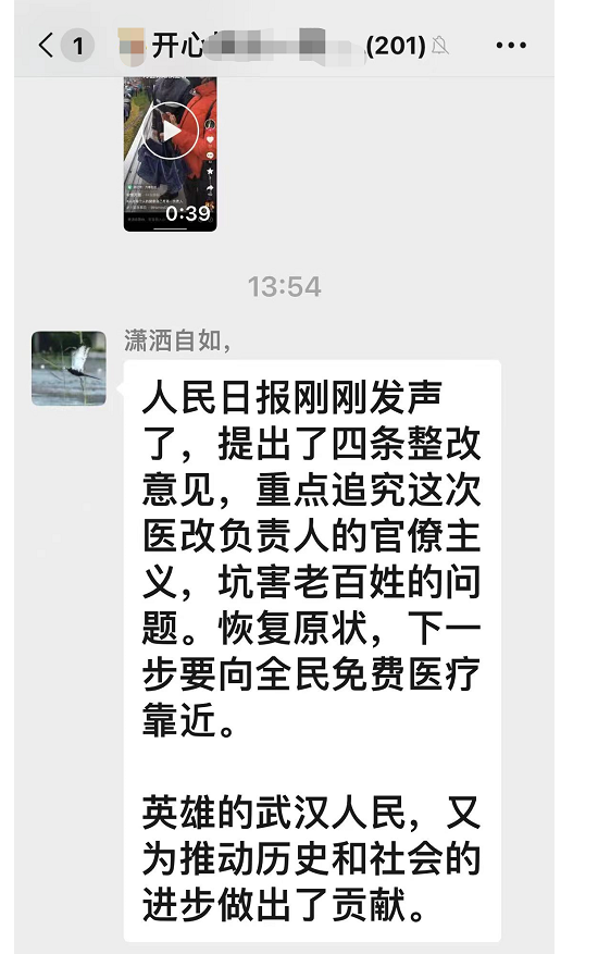 針對武漢暫時叫停醫改的網上傳言,有網民寫道,”本次醫改是國家層面的,全國都在推行,武漢不可能單獨叫停醫改……”,」哪裡是武漢醫保,是全國很多地方都這樣改了。退休人員每個月的費用連感冒藥都買不起,這是為人民著想嗎?