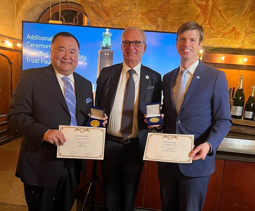诺贝尔可持续发展基金会同时为来自亚洲的阳光七星投资集团共同主席兼首席执行官吴征,以及另一位来自北美的美国国家野生动物联合会(National Wildlife Federation)主席兼首席执行官Collin O ́Mara颁发了“2022 年NST可持续发展杰出贡献奖章“,以鼓励他们多年来对气候变化所做出的努力和重要贡献。