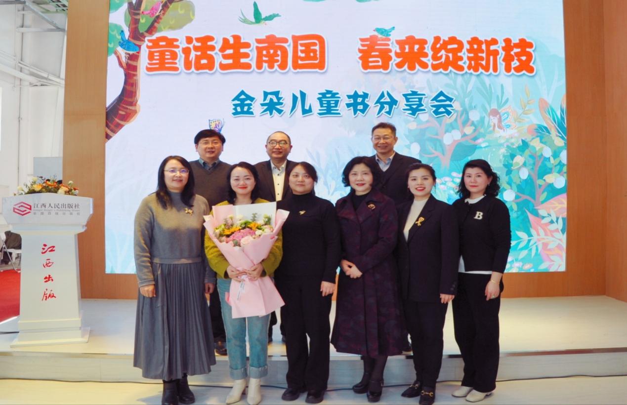 日前,由江西省出版传媒集团有限公司、中文天地出版传媒集团股份有限公司主办,江西人民出版社有限责任公司承办的“童话生南国 春来绽新枝——金朵儿童书分享会”在第35届北京图书订货会中国国际展览中心(朝阳馆)7号馆江西展馆举行。中国作协创研部发展研究处处长、中国作协儿委会委员兼秘书纳杨;著名作家、“五个一工程”获奖作品长篇小说《琵琶围》作者、高级编辑温燕霞;著名儿童文学作家,全国优秀儿童文学奖、文津图书奖获得者萧袤;著名儿童文学作家、北京老舍文学院副院长周敏;江西省作协儿委会副主任、江西人民出版社签约作家金朵儿;江西出版传媒集团总经理助理,江西人民出版社总经理、社长张德意等领导和嘉宾出席活动。江西人民出版社副总编辑王一木为活动致辞。