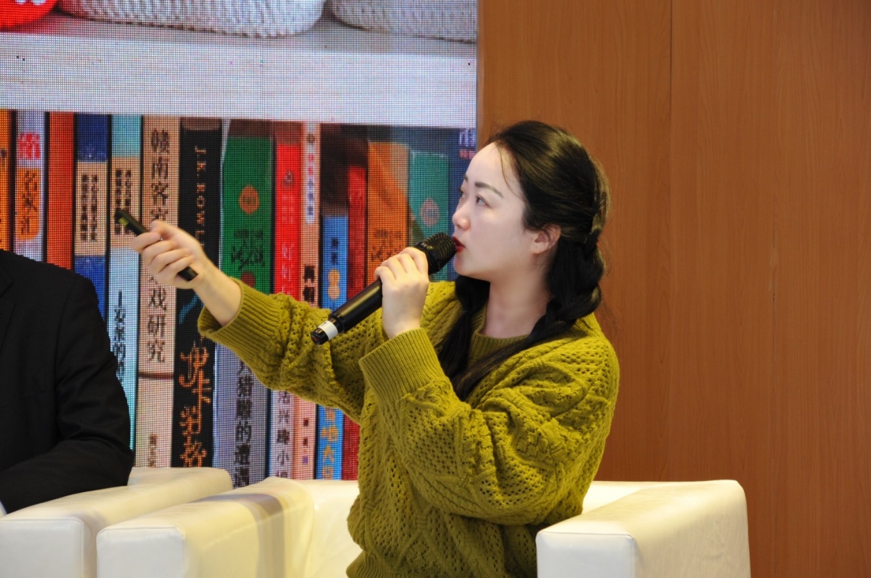 温燕霞现场分享了读书心得。她说道,金朵儿是赣南客家人,身上有着客家女人吃苦耐劳、不断进取的精神特质。她在小学教过十年书,是亲子阅读的陪伴者、实践者,这些经历让她深谙儿童的心理,从而创作出《绿耳》《小飞鱼蓝笛》等富有想象力和童真童趣的作品。她的童话故事既浅显好读,又富有深刻的故事内涵。