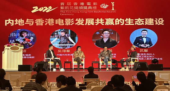 创投大会环节,《山海归途》、《少年球王》、《迷魂凼》、《破茧成蝶》等四部影片最终入围,片方代表做了精彩的项目分享和推介,获得了现场众多制片人的认可,迎来了阵阵热烈的掌声,有的项目和IP受到非常热烈的关注和问询。“内地与香港电影发展共赢的生态建设”和“新主流电影融入全球文化与市场的国际化之路”两场高峰论坛如期举行。编剧陈汗、导演麦咏麟、导演吴得华、演员崔根栓、演员朱铁和、导演尹大为等电影人探讨、分析时局发展下的中国电影产业的未来,也与现场的观众进行了思想火花的碰撞。