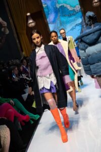 的确,与伦敦时装周大相径庭,“时尚源”与 “纯伦敦”是二合一的时尚贸易展,商业展。但在这里同样安排了多场时装秀表演,所不同的是,伦敦时装周是以秀场展示设计师们的理念,呈现的是时尚的艺术,而这里,穿在模特身上的服装却都挑选自两个大展所陈列的服饰,着实有些自产自销自导自演的意思,但是,谁又能说一件件穿着在模特身上的展品服饰,没有表达创造者们的理念呢?格洛丽亚总监的梦想是:为展会带来更多可持续品牌(Bringing more sustainable brand to the show)。