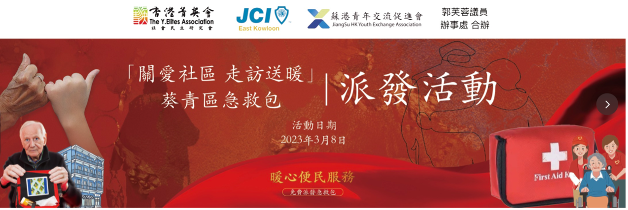 東九龍青年商會會長姚嘉志表示,這次主題活動提供免費更換家居舊有的急救包,學習如何使用急救包去處理傷口,以幫忙自己,家人和身邊的人,能夠提高市民的安全意識和急救意識,提升特發事件發生時的生存機會。而且本次主題活動亦滲入了可持續發展目標包括3.8實現全民健康覆蓋,推廣精神健康, 4.7教育推动可持续发展和全球公民意识以及17.促進目標實現的伙伴關係。最後感謝中聯辦新界工作部處長李偉希先生,以及香港菁英會社會民生研究會主任潘君宇先生出席支持。