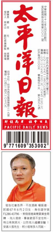 邮箱投稿 敬告啓示(轉載) 由 Dannuo - 2023年3月9日 敬告社會各界,不良酒商 楊振遠,民國67年6月2日生 ,身分證字號F1286 43796 。常假借進貨需要資金周轉,向人借款,事後避居不定住所。特公佈其照片,以防他人繼續受騙!受害人張先生,柯小姐等多人同啟。