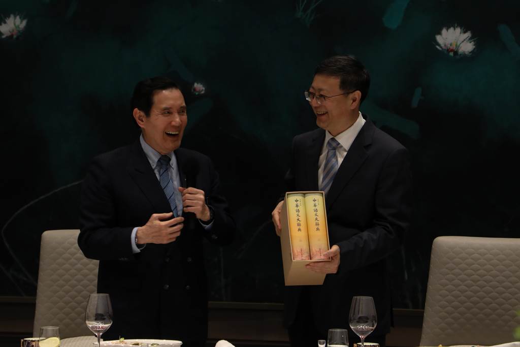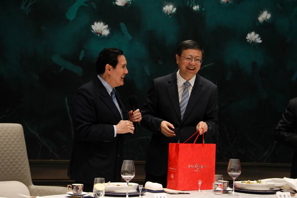 此外,馬英九一行今天傍晚會見中共中央政治局委員、上海市委書記陳吉寧。晚間陳吉寧宴請馬前總統,兩人互贈禮物。