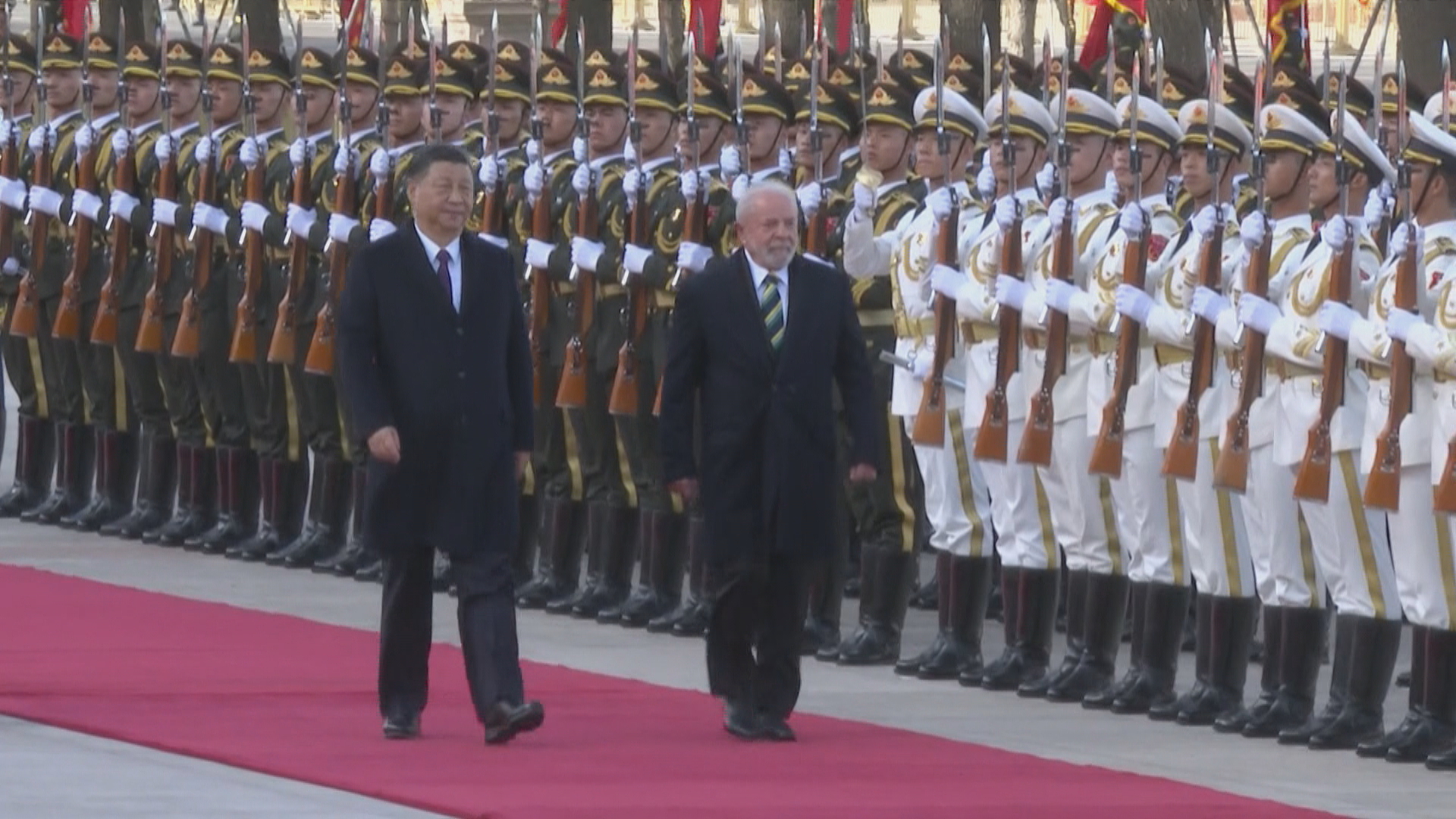(中華新聞通訊社/中華時報4月14日訊)中國國家主席習近平在北京人民大會堂東門外廣場舉行儀式,歡迎巴西總統盧拉對中國進行國事訪問。兩人之後會在人民大會堂舉行會談。