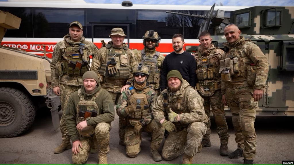 烏克蘭總統弗拉基米爾·澤連斯基(Volodymyr Zelenskyy)星期二(4月18日)探訪了烏東小城阿夫迪伊夫卡的烏軍部隊,在這之前一天,克里姆林宮說,俄羅斯總統弗拉基米爾·普京(Vladimir Putin)在俄軍佔領的烏克蘭領土與俄軍將領和士兵會面。