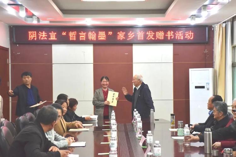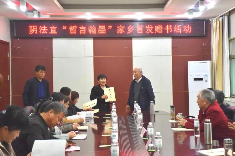 随后,阴法宜为村级代表们捐送“哲言翰墨”。“哲言翰墨”是阴法宜在学习书法、国学、哲学过程中探索使用的以书法形式表现哲学内容及个人见解的编著作品。