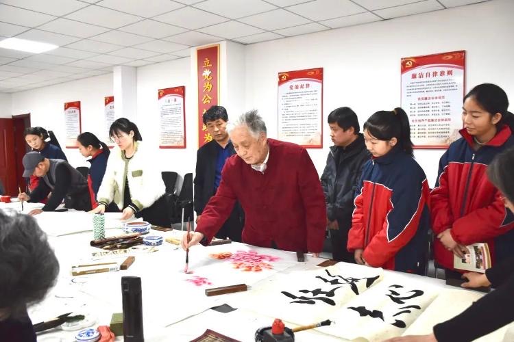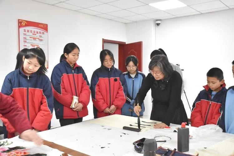 艺术家们现场挥毫泼墨,倾心创作,充分展示中国书画艺术之美。桃园镇初级中学的孩子们积极踊跃参与到本次书画艺术创作中。活动现场,艺术家与孩子们交流书画创作心得,教授孩子们书画技巧,并鼓励大家勤勉练习,培养兴趣,传承和发扬好优秀传统文化。