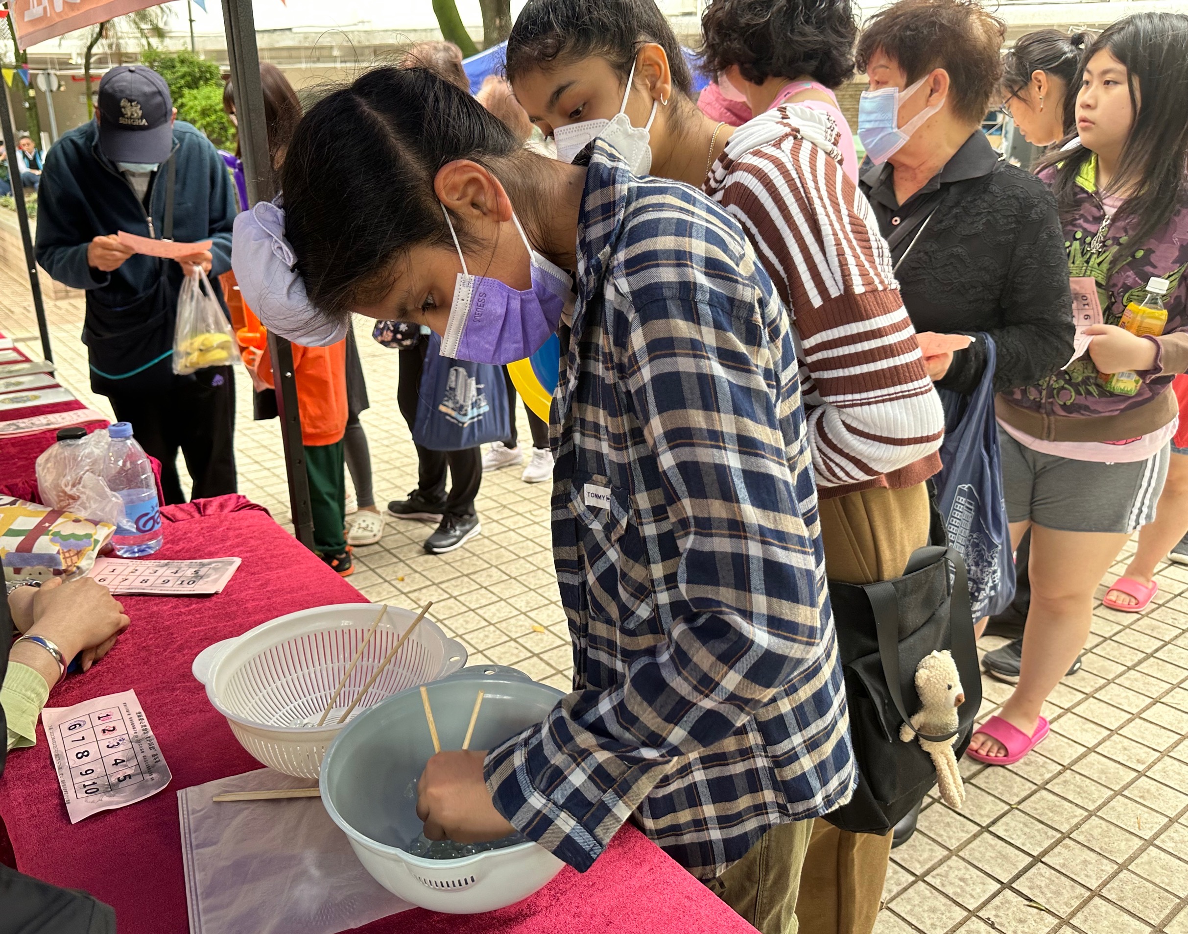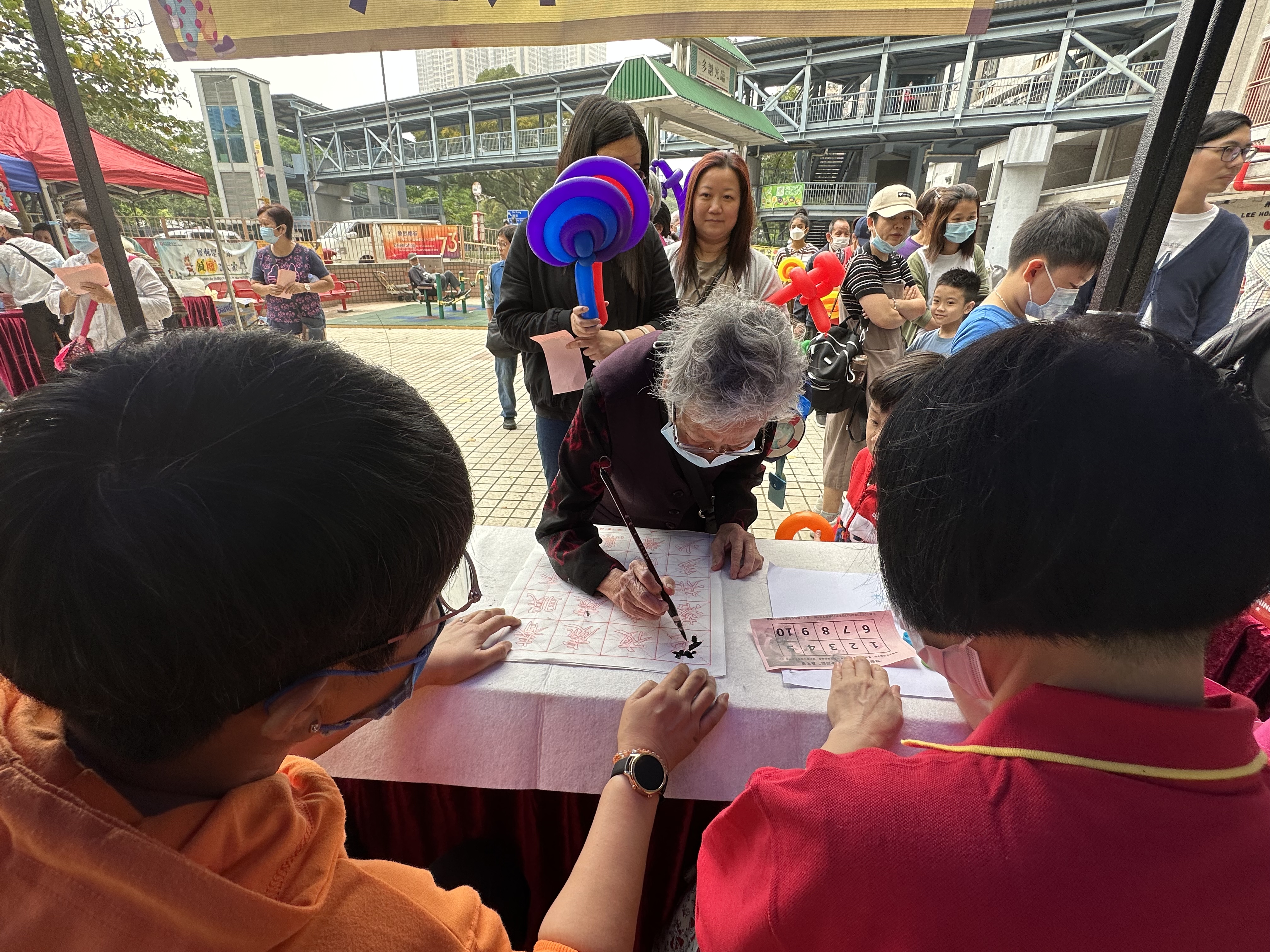八個攤位遊戲中,有華服試穿、寫書法這些宣揚傳統中國文化外,最特別的攤位是五大對碰,是宣揚獅子會五大目標,更向玩遊戲者解釋什麼是獅子會的五大目標,令他們認知獅子會,各參加者玩遊戲之餘又可以換禮物,出席人次達一千人,一千多份禮物全部送出,當場更選出20多名年滿80歲的長者,每人贈送紅酒一枝、福米一包,各位長者非常開心地領取禮物回家!