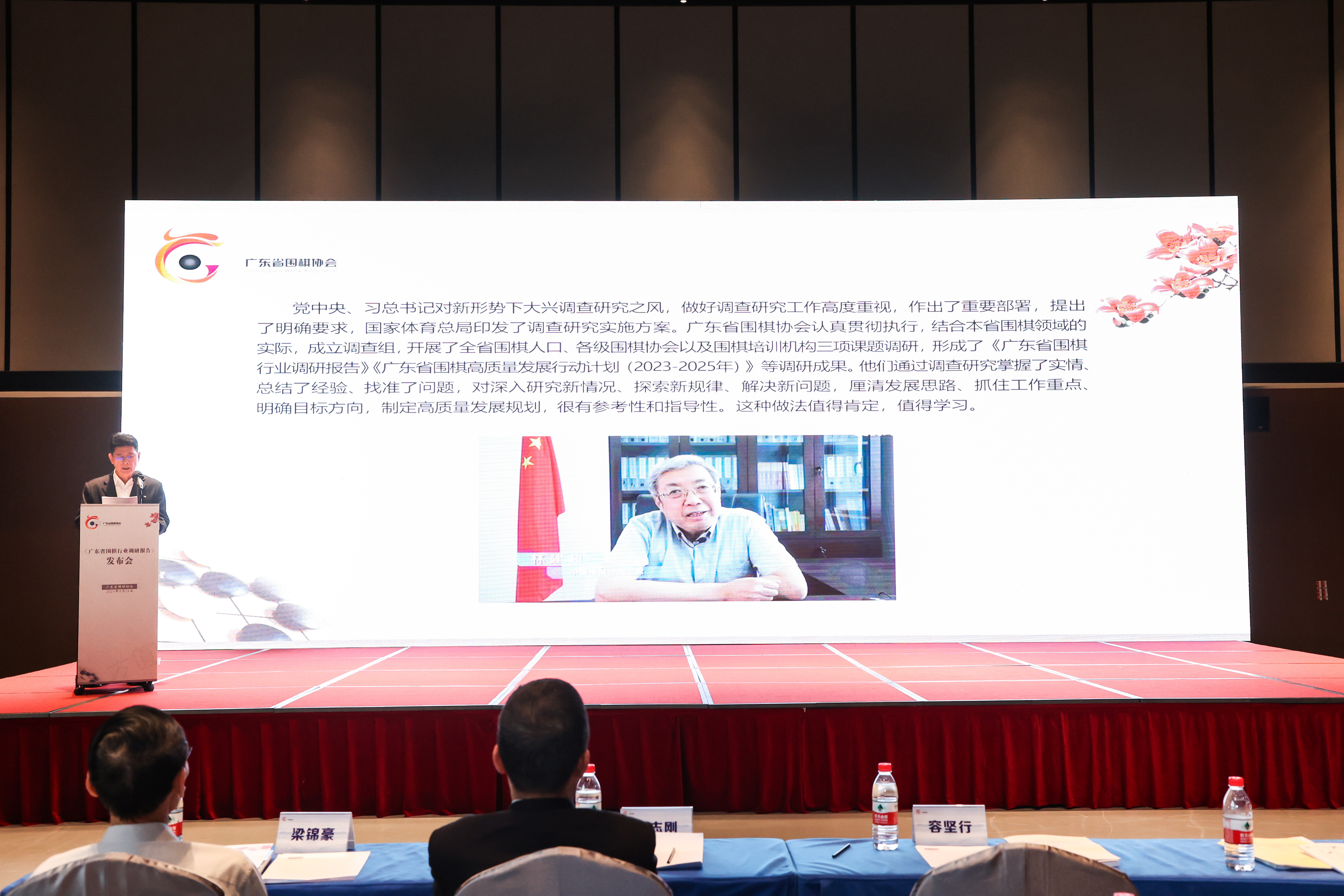 会上,广东省围棋协会秘书处负责人简要通报了调研工作情况,有关专家向与会代表详细解读、分享了相关调研数据和研究成果,协会主席容坚行谈了自己对开展这项工作的体会,并提出通过本次调研,要把课题成果转化为推动广东围棋行业高质量发展的重要抓手,努力加速广东由围棋大省向围棋强省转变。