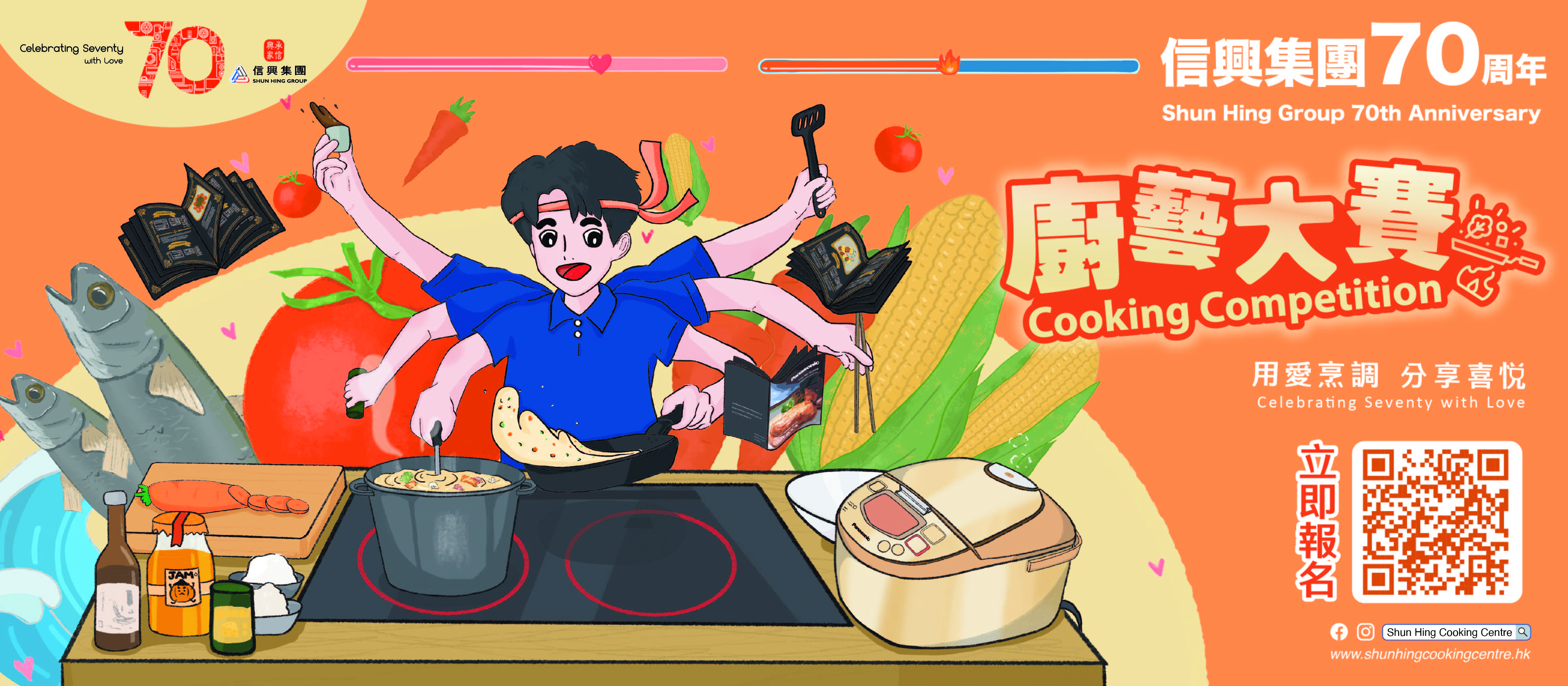 是次比賽的獎品非常豐富,除了首100位成功提交影片的參賽者可獲贈Panasonic手提攪拌機 MX-GS1(價值港幣338元)乙件外,入圍決賽者可獲贈價值高達港幣11,000元之指定信興集團家廚電器及產品。而冠、亞、季軍得獎者將可獲贈由信興集團送出的購物禮券,價值分別為港幣70,000元、38,000元及18,000元。為了配合「用愛烹調,分享喜悅」的主題,「信興教育及慈善基金」將為每位成功提交影片的參賽者另行捐出HK$100予「香港麥當勞叔叔之家慈善基金」,支持發展「以家庭為本」的服務模式,為病童及其家庭提供適切支援。有關比賽的詳情及最新消息,請瀏覽:https://www.shunhingcookingcentre.hk/shg70cc。