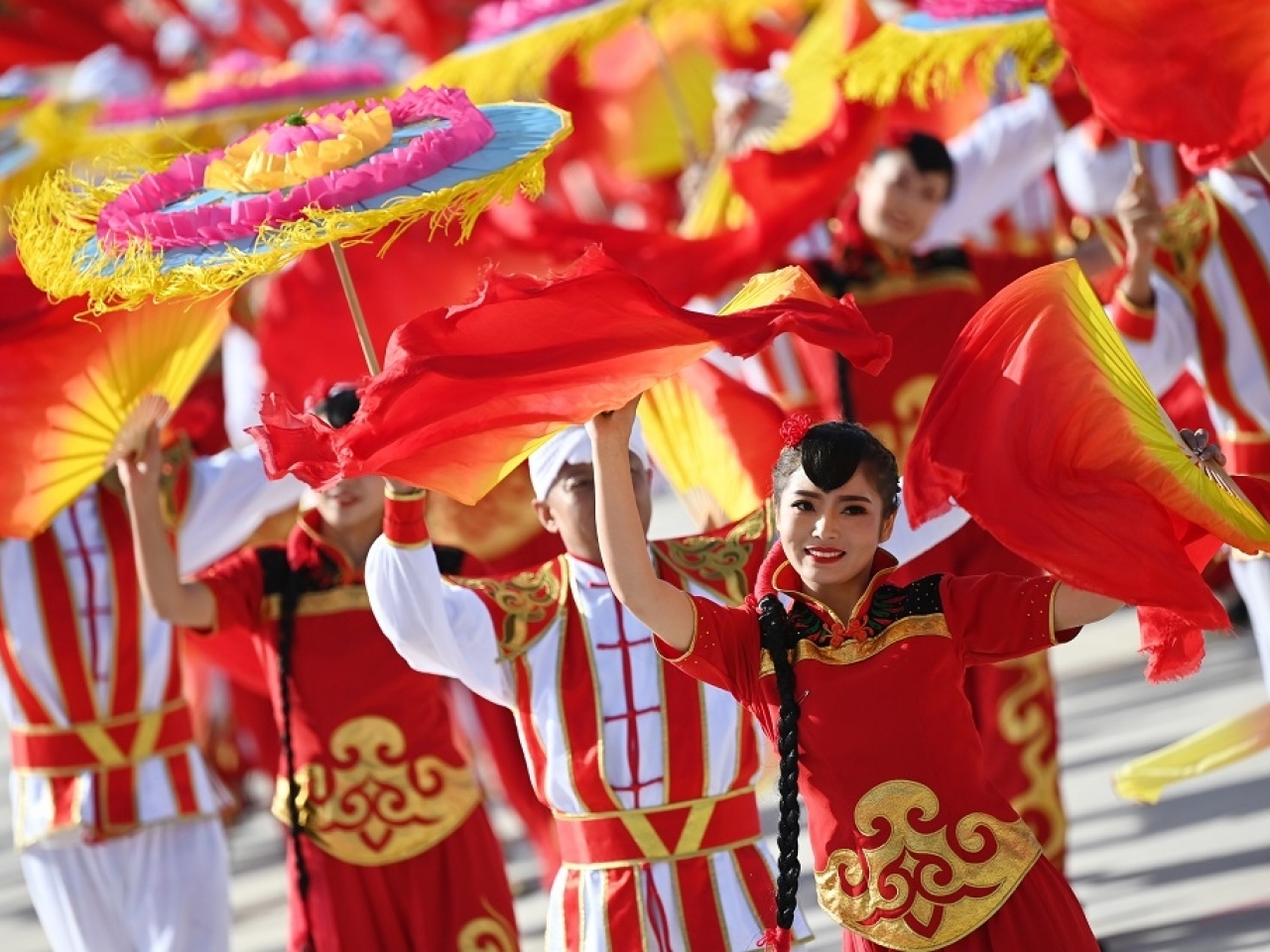在西安咸陽國際機場,當地民眾以民間藝術表演,歡迎來自中亞國家的貴賓。