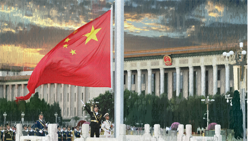 当父亲骑着自行车,把我拉到天安门广场时,神圣而庄严的国歌正在耳边响起,令我内心瞬间感到十分振奋,望着升旗台上那飘扬的五星红旗,在曙光中缓缓升起那一刻,我的内心竟然那么的震撼,所以忍不住举起手机“咔嚓,咔嚓”拍了许多照片。