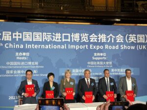 中国驻英国大使馆公使包玲,中国国际进口博览局副局长刘福学,英国中国商会会长、中国银行伦敦分行行长方文建,英中贸易协会公共事务执行董事Lise Bertelsen,励展全球业务发展总监Brenda Gordon等出席活动并致辞。