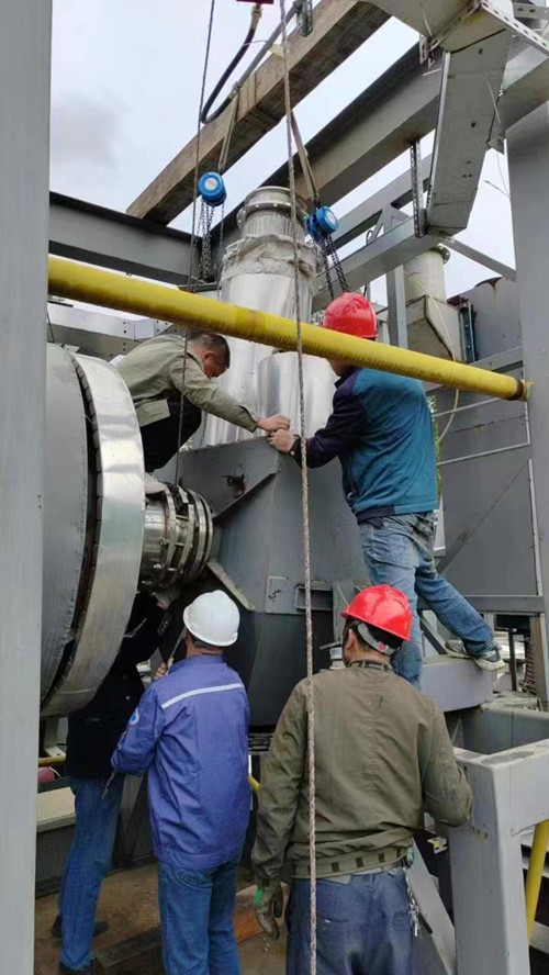 图为技术人员正在安装“光离子垃圾处理装置”成套设备(张泽 尤琦摄)