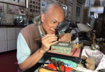 42年前的毫芒雕刻館還在原地等你!再見証一件不可思議的作品,用6個月時間,研究,設計,鑽研技術,最終完成任務,一件世界最小的台灣黃金龍舟產生,龍舟尺寸:最長1.3公分,最寬0.4公分,最高0.6公分,龍頭嘴裏含0.8毫米的「龍珠」,最困難最有意義。看著指尖的黃金材料,他說:「思索大半天,一艘龍舟在腦海航行,雕個龍舟好不好?」屋外粽香隨風飄來,答案在他明亮的眼睛裡。